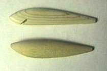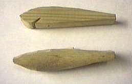 まずはルアーの大きさにあわせて材木を切ります。ちなみに上は桧、下はラミン材です。この時にリップを埋める溝を作るために、のこぎりで切り込みを入れておくと、後の作業がしやすいです。