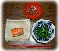 塩鮭 小松菜のおひたし キャベツの味噌汁