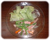 白菜炒めはニンニクをまず炒めてから肉を入れます。。最近臭くないニンニクというのもでてきました。それで朝から食べられます。