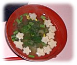 星形の麩とアスパラ菜の味噌汁