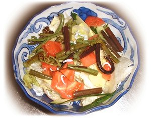 5月14日 山菜サラダはノンカロリー。たくさんめしあがれ