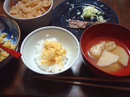 できあがり。御飯にかけてたべます、 卵が貴重品だった昔、病気になると母が作ってくれました。