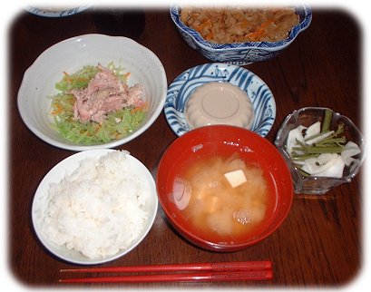 サラダは、まだ残っているローストチキンを裂いてゆでキャベツ・ゆでにんじんに、乗っけたもの。ドレッシングを掛けて食べました。 ゴマ豆腐は生協で取り寄せたのに忘れ果てて賞味期限が来たので朝から・・。サッパリ味でたれナシでもいけました。 切り干しは柔らかくて美味しいんですけど、評判はいまいち。