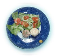 さらだ、(キャベツの千切り、キュウリ、トマト、ウインナー)