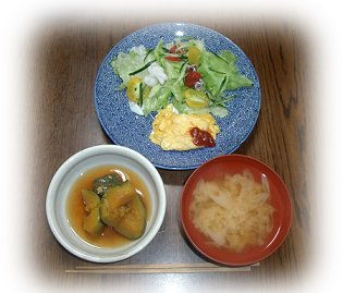 物忘れが激しいから朝は何食べたっけと夕べには考え込みます。そのためのデジカメだったけれど、HPが重くなるのでやめたら、やっぱり忘れます。卵使ったなあ、グチャグチャやったなあ、そうだかきたまごだ。なんかすわりがわるいな。かきたまごを英語でなんて言うんだっけ、えーっ?と そうそう、スクランブルエッグ! にたどり着くまでに時間がかかります。写真を見ないで思いだせて、まだきょうは○です。プレーンオムレツのしくじりともいうかもですが。
