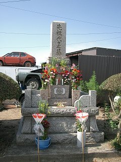 お盆が来て 謎が解けた。 どの墓の前もこのぼんぼりが立てられていた。 ふむふむ、ところかわれば風習も変わるものだね。 (後ろは中古車置き場です)
