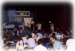 ステージではセミプロの歌、町内会長さんのあいさつ。そしてビンゴ大会。130数軒の町ですが、200人以上集まっていた盛大な町内会祭りです。こんにゃく、焼きそば100円。焼き鳥は3本100円。ジュース49円。生ビール300円。道理で公園の周りで灯のついている家は(何も知らなかった)わが家だけ。じいちゃんもチューボウもそろっています。