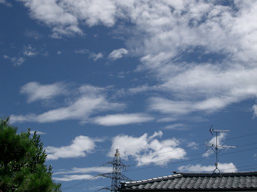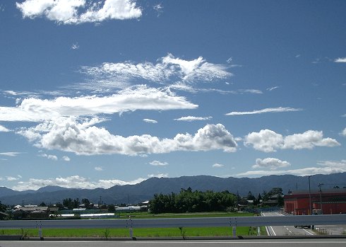連日36℃の快晴が続いていますが、台風のせいでしょうか、空は蒼く澄みわたり、とても美しい。 子どもの頃の夏休みに蝉とりをしながら見ていた空を思い出しました。 きのうは入道雲がやまなみ全部におぶさっていました。