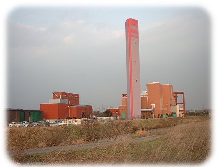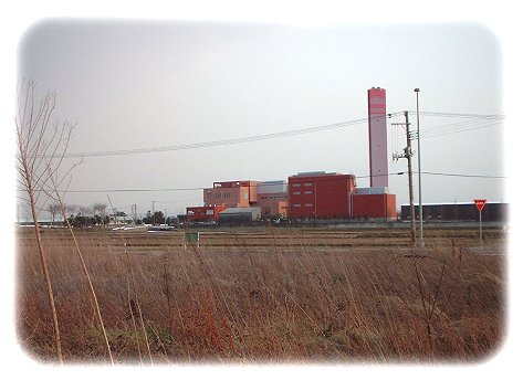 このカラフルな建物は豊栄の清掃工場でした。 ゴミ焼却場です。高い建物と思っていたのは 煙突です。たまに煙を吐いています。そういわれれば、 こんな煙突のある建物は近隣の市町村の田んぼの中に ポツポツありますね。でもこんなにきれいなのはここだけ?