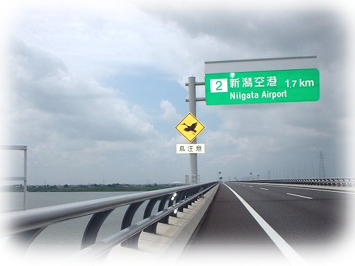 高速道路が阿賀野川を渡る橋。名前はえーと、[阿賀のかけはし」?