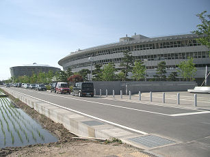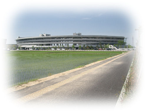 本館は優美な弓なりの曲線。二階中央は吹き抜け。斬新ですが、吹雪の日はどうなんだろう。校舎のあちら側は日本海に向いているので。