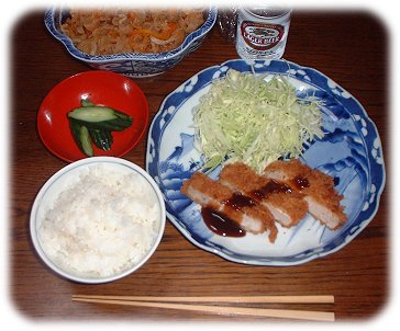 今夜は、飲み会なので孤食。 で、手抜き。どこがというと、トンカツは原信の溺愛もとい、出来合いの「やわらかトンカツ」なの。プリーズでよく買っていましたね。あ、知らないか。未来ちゃんごのみにそれをカツ丼にしていたからバレナカッタカモ。今日は3切れ(一枚の半分=¥165)をオーブントースターで温めた。カリカリになって、これはイケマスよ。残りは冷凍。
