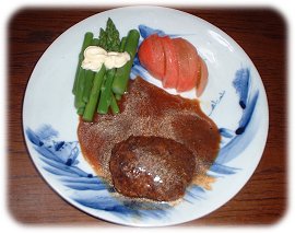 5月28日 夕ごはんは 間野肉店自家製のハンバーグ。