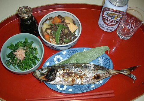 塩焼きの鰺は95円。脂がのっていておいしい。養殖かもしれないけど、目と肌が青光りしていれば鮮度はいい。スーパーで買ってごらん。 煮しめはごま油で炒め煮。ゼンマイは油と相性がいいからね。 アスパラ菜はそちらにはないでしょうね。壬生菜かな。 実習二日目のワトソンさん。そろそろめげるかと思ったら、「ちょっとマテこれはどうなってるんだ」と、いったん自分で止めて先生にチェックを入れたんだって。こんな生徒は他にいないでしょうね。