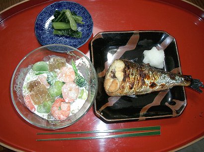 諸橋さんのうちで御馳走になって、とってもおしゃれで美味しかったので、いつか挑戦と考えていた料理。なのになぜかゼリーは固まってくれないし、やっとできてもぐちゃっとしてて、鉢に入れたら、だんだんトロケてきました。ゼラチンの分量を間違えたかしら。佳也子さんに聞いてこなくちゃ。